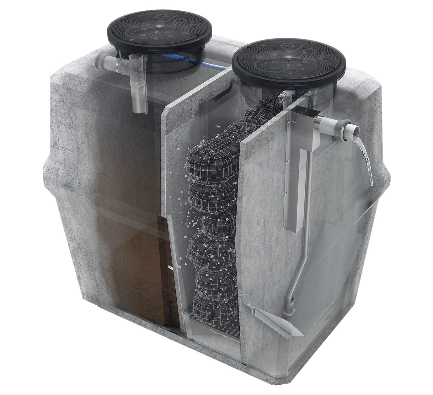 - Powerless or low power high-performance wastewater treatment
